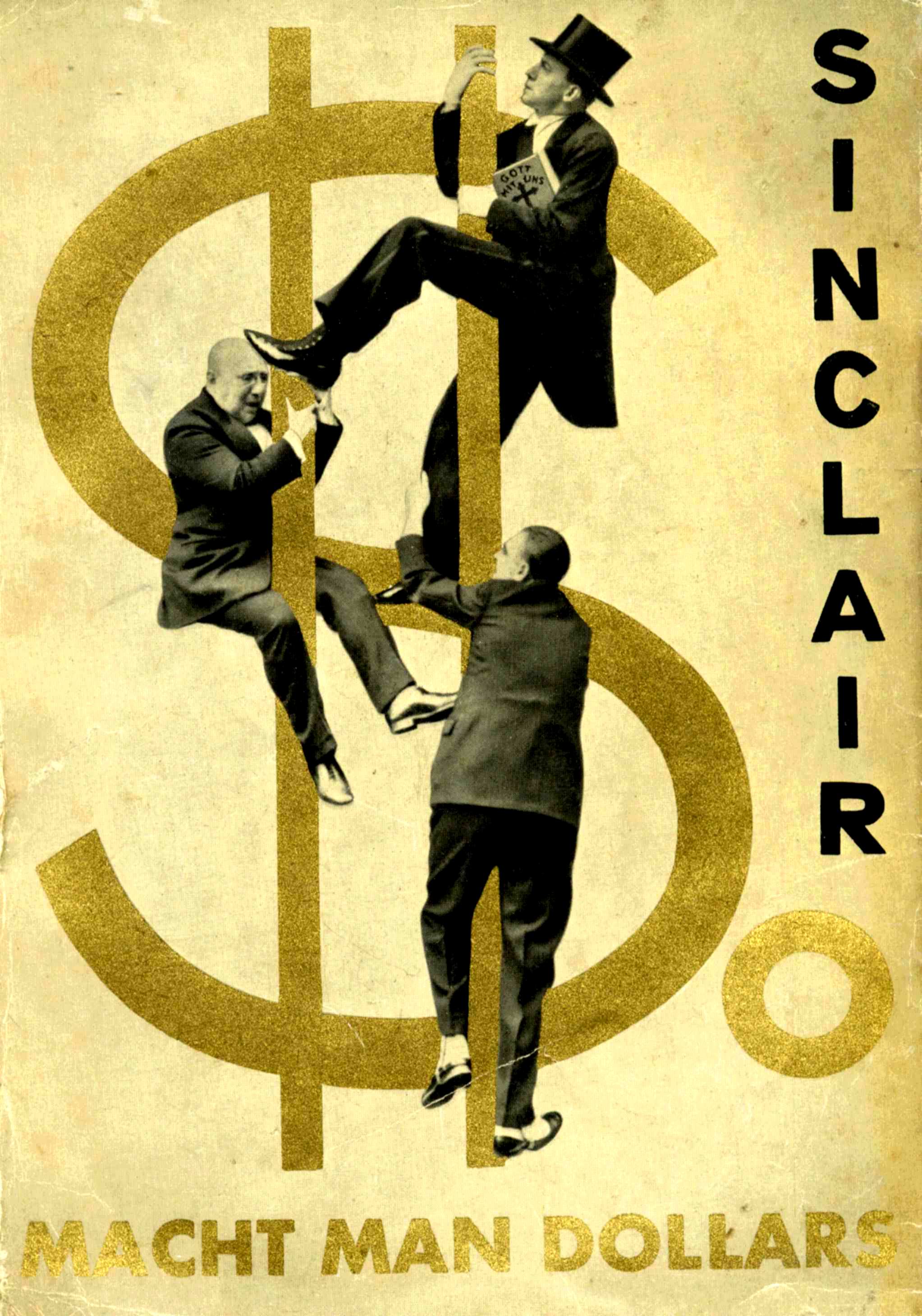 Sinclair, Upton. So macht man Dollars. Roman. 1.-35. Tsd., Berlin, Malik, 1931. 398 S., 1 Bl. OKart. Mit dem Original-Schutzumschlag mit Fotomontage auf beiden Deckeln von J. Heartfield. Gesammelte Werke, XIII. Deutsche Erstausgabe. Malik-Katalog (Bibliographie) 253. Hermann, Malik 379. Siepmann, Heartfield-Bibliographie A/142: Die beiden Fotomontagen von Heartfield zeigen auf der Vorderseite 3 Männer, die auf das goldene Dollarzeichen klettern. Auf der Rückseite eine Börsenszene, im Hintergrund eine Dollarnote mit hineinmontiertem goldenen Kalb (Pinkus).